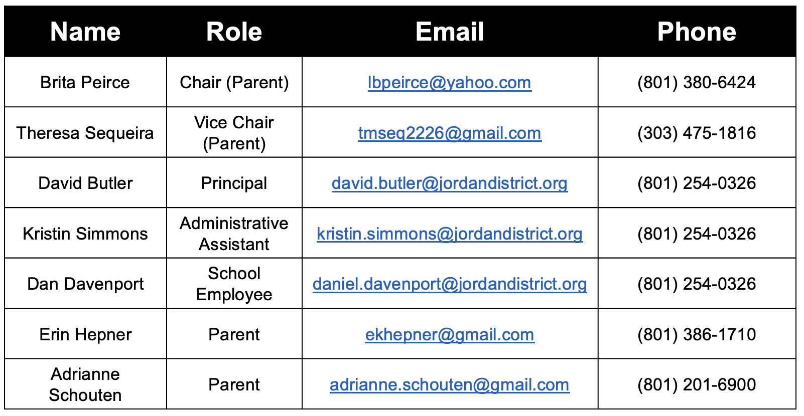 2025-2026 School Community Council Members